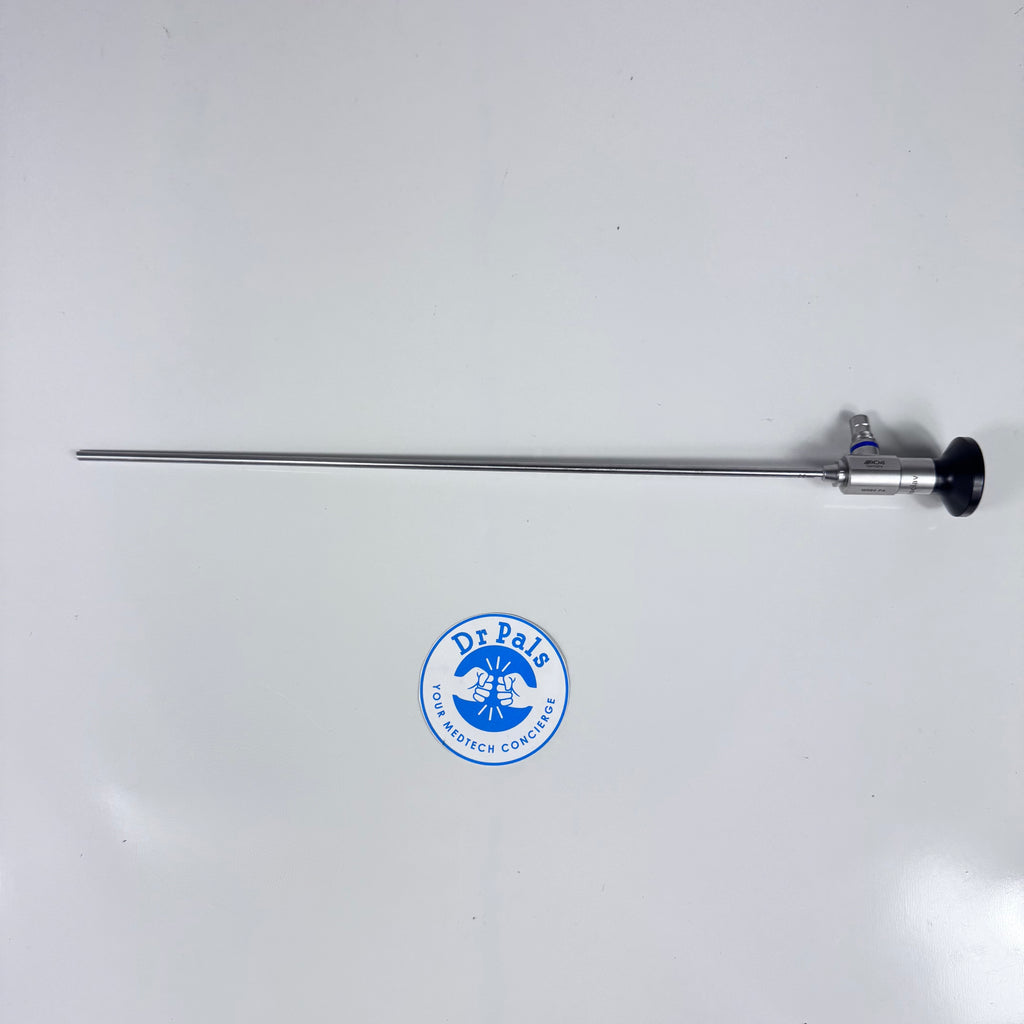 The ACMI 16994FA is a 4mm diameter rigid laparoscope featuring a 12° angled viewing lens designed for minimally invasive laparoscopic surgeries. This laparoscope delivers bright, clear visualization of the surgical field with precision optics suitable for detailed abdominal and pelvic cavity assessments. Constructed of robust materials compatible with repeated autoclaving, it ensures longevity and safety in clinical environments. Its ergonomic design supports ease of use by surgeons during diagnostic and operative procedures.