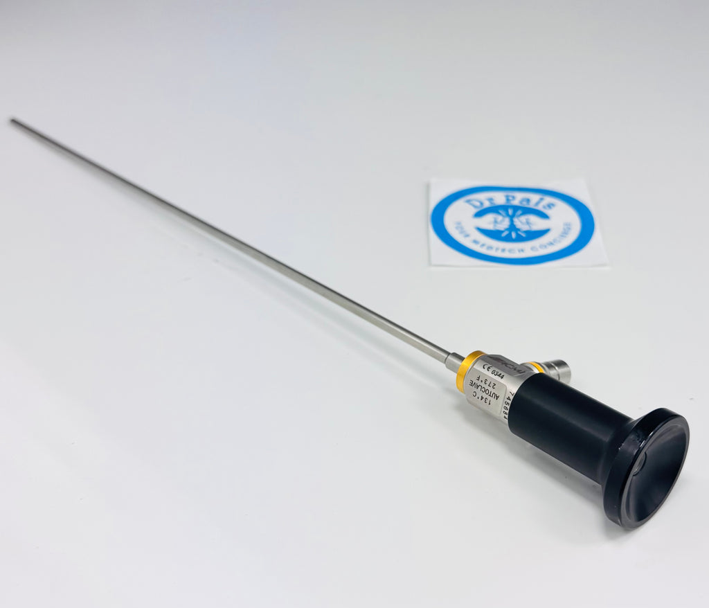 The ACMI M3-0A Gold is a rigid cystoscope designed for endoscopic visualization and diagnostic procedures in the urinary tract. It features a 4 mm shaft diameter and a direct (0°) field of view, offering very clear and distortion-free imaging. The cystoscope is autoclavable for repeated sterilization and constructed with premium materials for enhanced durability. Color-coded yellow for easy identification, it is compatible with ACMI cystoscopic sheaths and bridges for flexible surgical setups. This model is suitable for both human and veterinary medical applications.