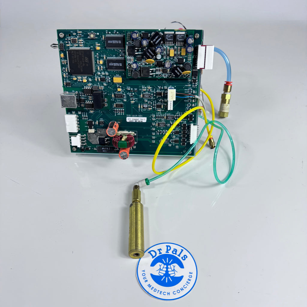 The Alcon Infiniti 210-2530-001 is the core phacoemulsifier assembly for the Infiniti Vision System, designed to deliver advanced ultrasound cataract surgery performance. This assembly includes the integrated printed circuit board (PCB) part number 210-1019-501, which governs the system's ultrasonic power, fluidics, and safety controls, ensuring precise and reliable operation. The unit provides compatibility with torsional and longitudinal phaco modes, supports advanced fluidics management, and features seamless integration with the system’s user interface. Highly durable and designed for surgical precision, it represents the heart of Alcon's Infiniti platform for optimized cataract removal.