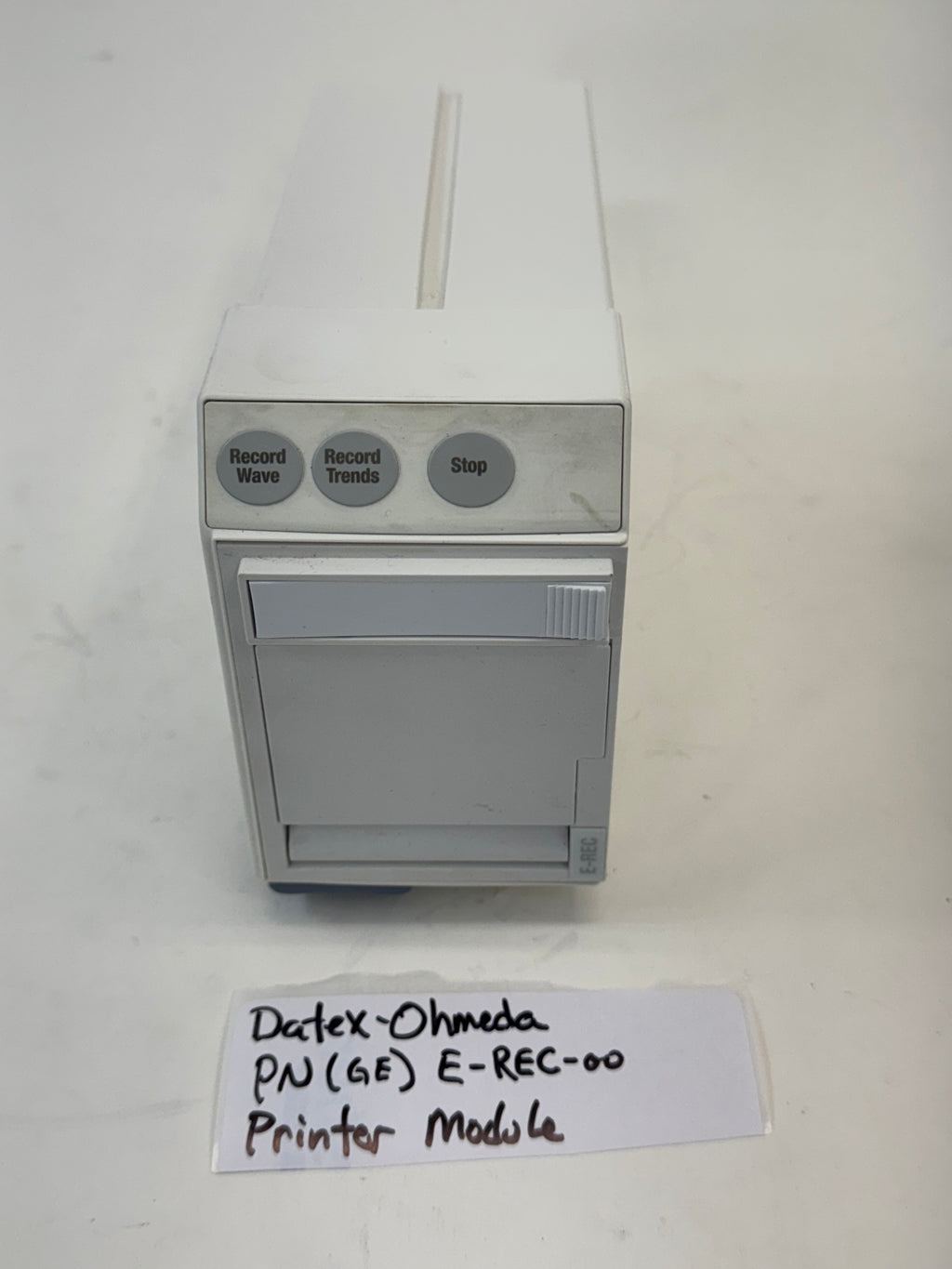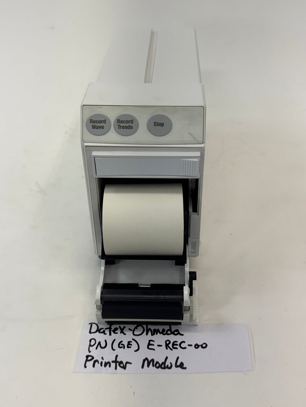 - The Datex-Ohmeda E-REC-00 Printer Module is an essential accessory for modern anesthesia machines, ensuring reliable data recording and optimal patient care during surgical procedures.