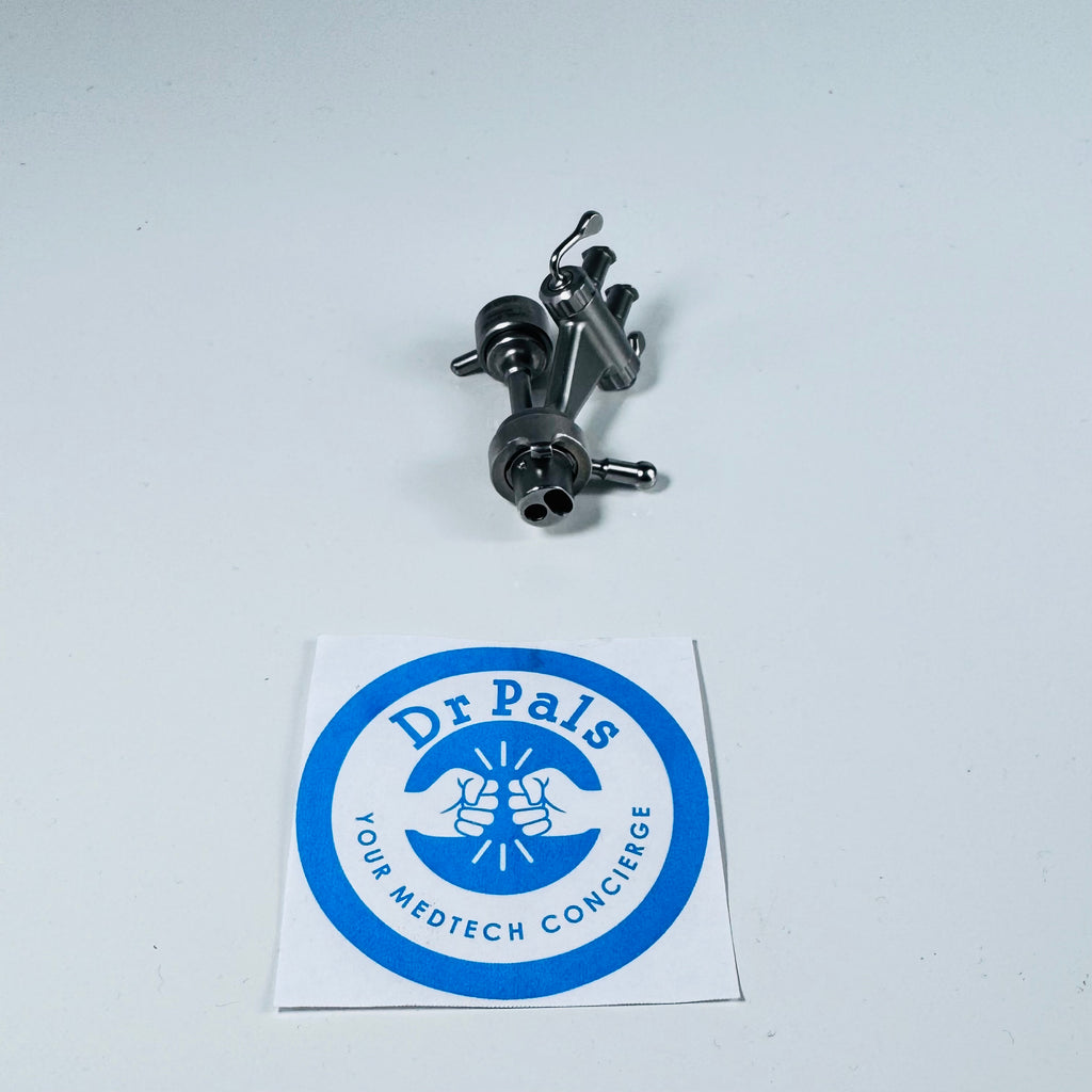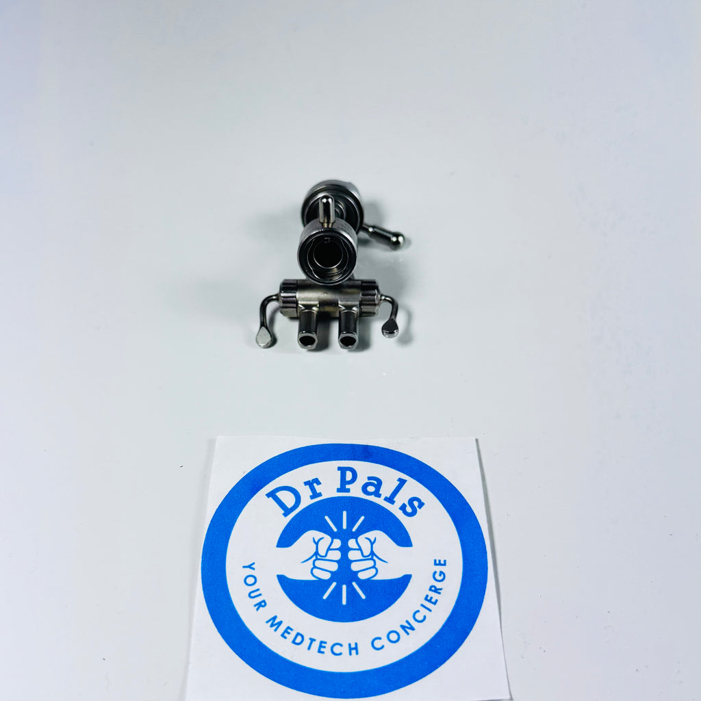 The Karl Storz 27025GF is a high-quality two-channel telescope bridge designed for use with cystoscope and urethroscope sheaths in urological endoscopy. This bridge enables the simultaneous use of two working channels, allowing the passage of instruments such as biopsy forceps, electrodes, or irrigation channels. It provides secure locking and precise alignment for optimal visualization and manipulation during diagnostic or therapeutic urological procedures.