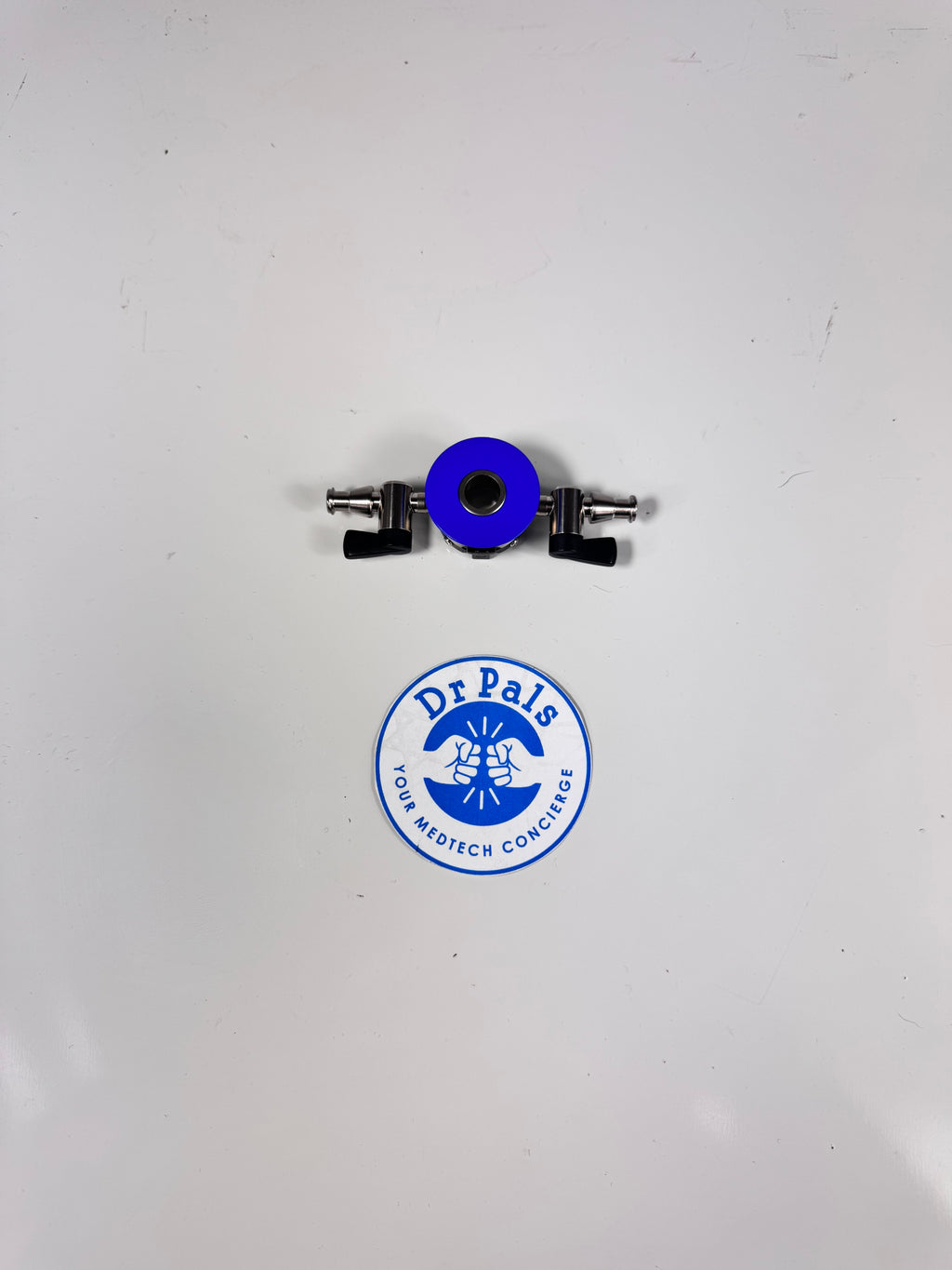 The Olympus A22053A is a reusable irrigation port assembly featuring a double stopcock design for controlled fluid management during endoscopic and cystoscopic procedures. It attaches to compatible Olympus scopes or tubing sets, allowing the clinician to regulate irrigation inflow, perform flushing, and maintain clear visualization of the operative field while minimizing disconnection steps.