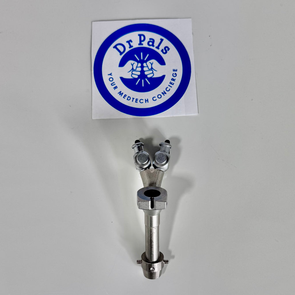 The Olympus A2977 is a dual-channel telescope bridge designed for use in urological endoscopic procedures. This accessory enables the simultaneous introduction and manipulation of multiple ancillary instruments through a cystoscope or resectoscope, enhancing procedural flexibility and efficiency. Its robust, reusable construction ensures compatibility with Olympus endoscopic systems and supports repeated sterilization for long-term clinical use. The dual-channel design is particularly advantageous for complex interventions requiring multiple instruments or irrigation and suction capabilities.