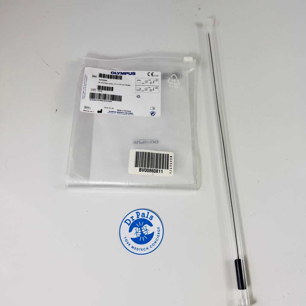 The Olympus A37020A is a reusable flexible high-frequency (HF) button electrode designed for precise tissue coagulation in mini-nephroscopy, pediatric cystoscopy, and percutaneous procedures. Its 3 Fr shaft navigates 7.5 Fr working channels of compact nephroscopes (A37025A) and cystoscopes while the button tip delivers controlled monopolar energy for hemostasis through Olympus ESG generators.