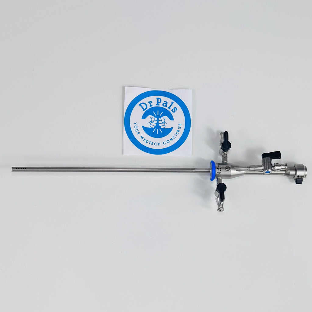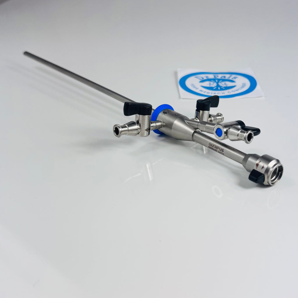 The Olympus A4776 is a rigid hysteroscopy sheath designed with a 4.5 mm outer diameter and continuous flow capability. It is used primarily in hysteroscopic diagnostic and operative procedures, allowing fluid irrigation and visualization within the uterine cavity. This sheath fits Olympus rigid hysteroscopes and supports a 5 French working channel for insertion of instruments. The continuous flow design helps maintain clear imaging and efficient fluid management during procedures. It is made from durable materials ensuring autoclavability and long-term clinical use.