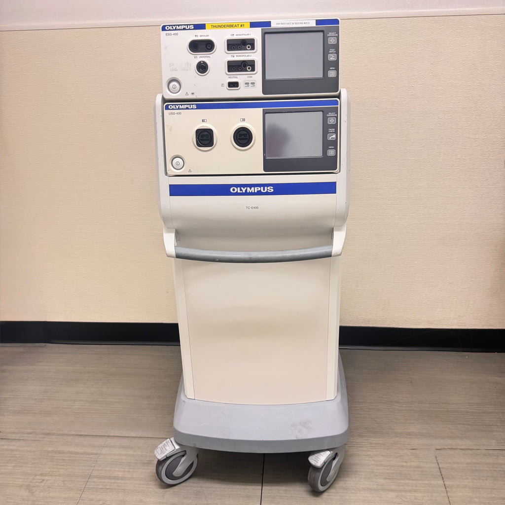 The Olympus ESG-400 is a state-of-the-art universal high-frequency (HF) electrosurgical generator designed for use in open, laparoscopic, and endoscopic surgeries. It supports both monopolar and bipolar electrosurgical modes and offers advanced features such as fast plasma ignition, high power cutting, and precision bipolar resection function. Equipped with a sophisticated monitoring system that performs 4,000 measurements per second of current, impedance, and voltage, it ensures safety and optimal performance. The ESG-400 is also EndoAlpha compatible and integrates with the THUNDERBEAT system for advanced surgical tissue management, combining bipolar HF energy with ultrasound for cutting and coagulation.