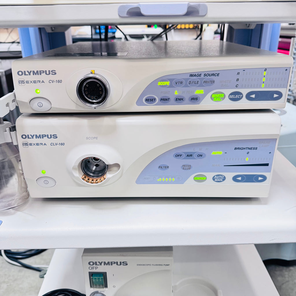 Olympus CV-160 CLV-160 EVIS EXERA System with Scopes. Scopes have not been thoroughly tested and may need repair.