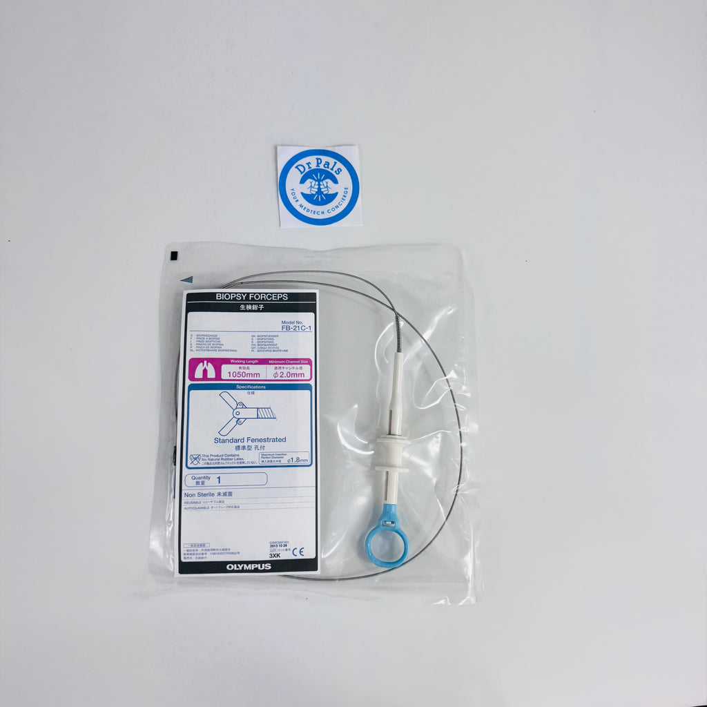The Olympus FB-21C-1 is a reusable biopsy forceps designed for pulmonary endotherapy procedures. It features a fenestrated, oval cup design for obtaining deeper and larger tissue samples, dedicated for use in bronchoscopies or similar diagnostic interventions. The device is manually operated, flexible, and constructed from high-quality stainless steel to ensure durability and reliable performance within narrow channels.