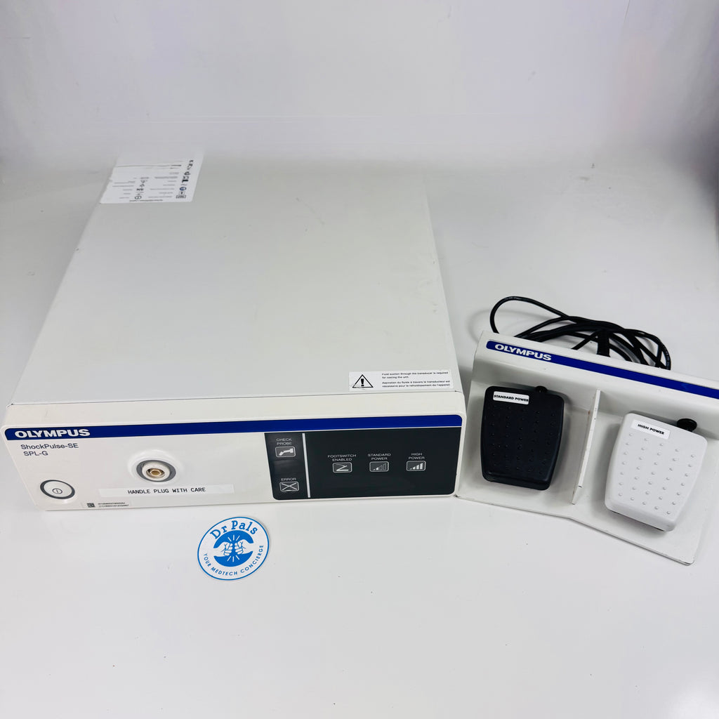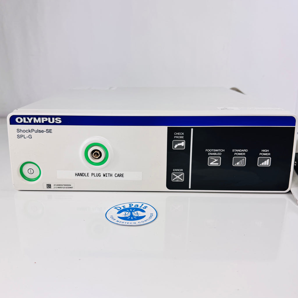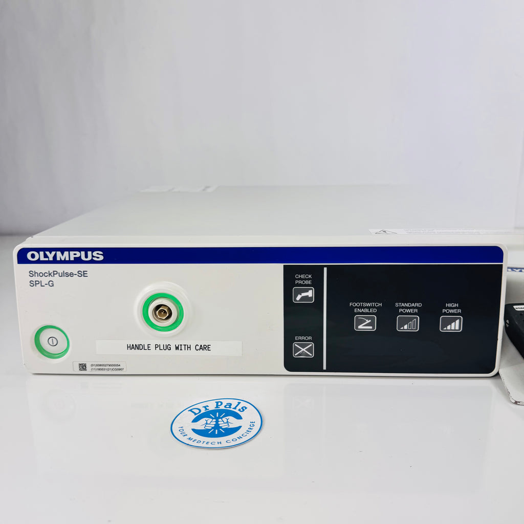 The Olympus ShockPulse-SE SPL-G is a next-generation lithotripsy console that drives ShockPulse-SE probes to deliver simultaneous continuous ultrasonic energy and intermittent mechanical shockwave energy through a single probe for rapid stone fragmentation and aspiration. It is designed for use in PCNL, mini-PCNL, URS, and bladder stone procedures when paired with the ShockPulse-SE transducer, footswitch, and the full range of disposable or reusable probes sized for kidney, ureter, and bladder applications.