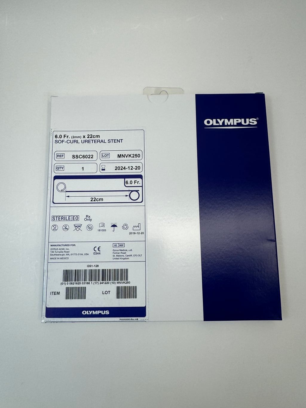The Olympus SSC6022 Sof-Curl is a high-quality double-J ureteral stent designed for optimal patient comfort and clinical efficacy. With a 6 Fr diameter and 22 cm length, this stent is engineered to maintain urine drainage from the kidney to the bladder following various urological procedures. The Sof-Curl design features soft, pigtail ends that reduce irritation and enhance patient comfort during indwelling periods.