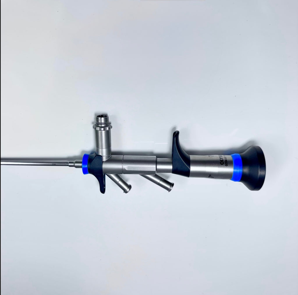 The Olympus WA02946A is a dual-channel, semi-rigid ureteroscope designed for urological procedures requiring precise visualization and versatile instrument access. With a diameter of 7.5 Fr and a working length of 33 cm, this scope features two working channels (2.4 Fr and 3.4 Fr) and a straight eyepiece with a 7° direction of view. The dual-channel design allows for simultaneous use of instruments or irrigation, enhancing procedural flexibility and efficiency. Olympus’ fused-quartz image bundle ensures clear, high-resolution visualization, while the robust, autoclavable construction supports repeated clinical use.