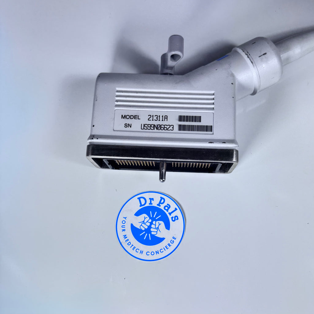 The Philips 21311A is a phased array ultrasound transducer commonly known as the S3 probe, designed to provide high-performance imaging for adult cardiac, contrast-enhanced, harmonic, abdominal, and transcranial Doppler (TCD) applications. Operating primarily in the 1.5 to 3.0 MHz frequency range, it offers exceptional penetration and image quality essential for challenging patient anatomies. The transducer supports advanced imaging modes including 2D, Doppler, and harmonic imaging to aid in detailed diagnostic evaluation of cardiac and abdominal structures.