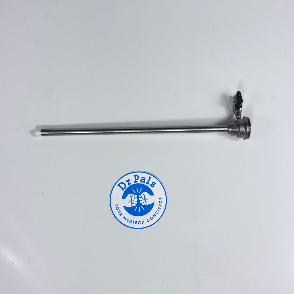 The R. Wolf 8655.3841 is a reusable internal sheath designed for use in continuous irrigation endoscopic surgery, particularly with rotatable continuous irrigation resectoscope systems. It features a 24 French diameter suitable for adult cystoscopy and surgical procedures. The sheath includes a ceramic tip for durability and minimal tissue trauma, with an automatic lock mechanism to secure it in place. Its design supports smooth instrument passage and efficient irrigation to maintain a clear operative field. The 8655.3841 sheath is color-coded yellow for easy identification in surgical setups.