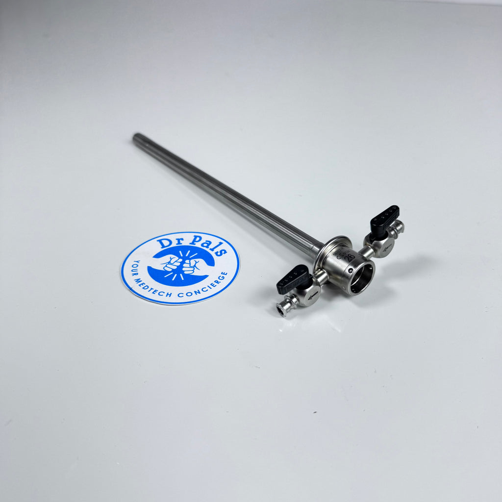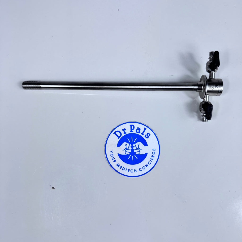 The R. Wolf 8675426 is a 26 French outer sheath designed for use with Richard Wolf resectoscopes in urological endoscopic procedures. This continuous irrigation outer sheath features the innovative "Shark-tip" oblique distal end made of durable black ceramic that permits focused irrigation flow and prevents reflection of light for optimal visibility during surgeries. The double sheath design includes a 360° rotatable inner sheath to provide enhanced control and precise positioning of telescopes and working elements. Its ergonomic design includes enlarged irrigation stopcocks for improved flow characteristics and torsion-resistant connectors for secure assembly. The sheath ensures constant improved visibility with maintained irrigation flow, supporting efficient and safe transurethral resections and interventions.